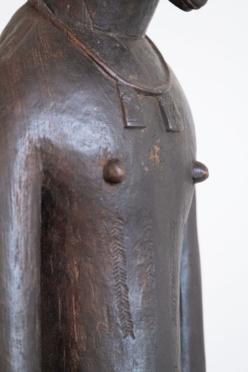 The figure’s tall, slender proportions and simplified details set it apart from earlier or ritual altar figures. Its clean surface and modernist elongation suggest it was carved in the mid-late 20th century, possibly for the art market rather than long-term ritual use.